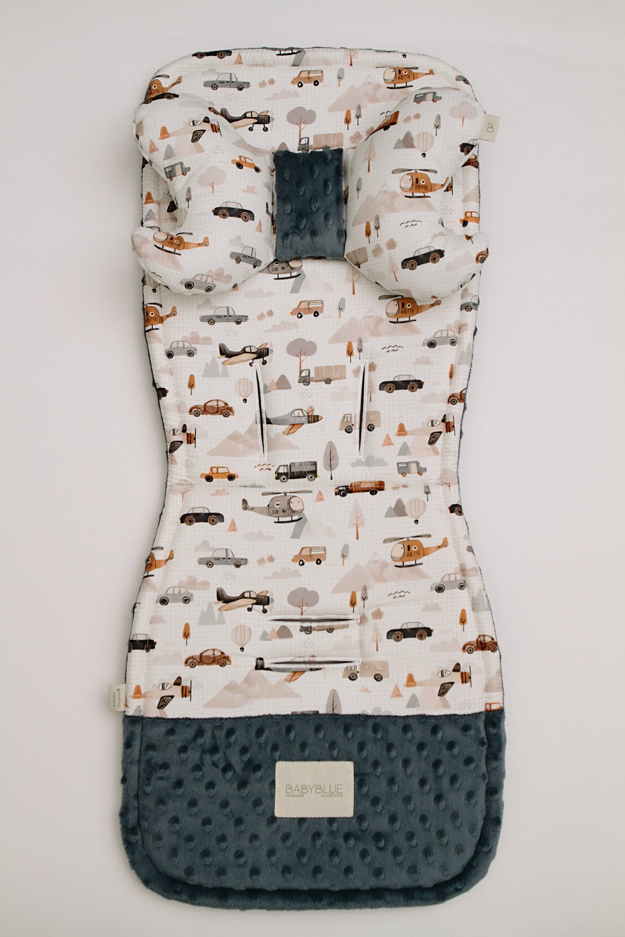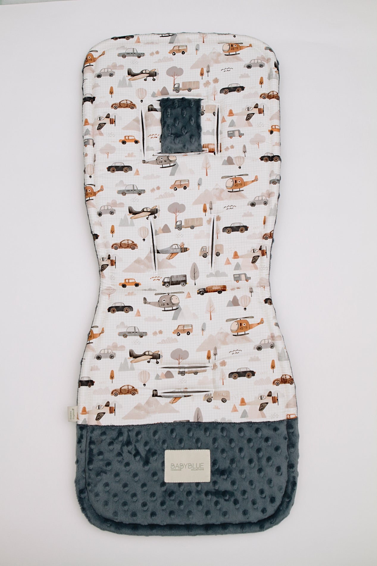 Κάντε τις βόλτες σας με το καρότσι πιο κομψές από ποτέ! Το κάλυμμα καροτσιού της BabyBlue με τον υπέροχο σχεδιασμό του προσφέρει μεγάλη άνεση στο μωράκι σας καθώς έχει αφρώδες εσωτερικό στρωματάκι. Είναι διπλής όψης κατασκευασμένο από 100% βαμβακερό ύφασμα από την μία πλευρά και βελούδινο minky από την άλλη. Μπορεί να χρησιμοποιηθεί χειμώνα – καλοκαίρι. Προστατεύει το καρότσι σας και είναι εύκολο στη χρήση. Στην πίσω όψη υπάρχουν δύο λάστιχα για καλύτερη εφαρμογή. Συμβατό με τα περισσότερα καρότσια. Συνδυάστε με το Butterfly Wings της ίδιας σειράς για ένα υπέροχο αποτέλεσμα.