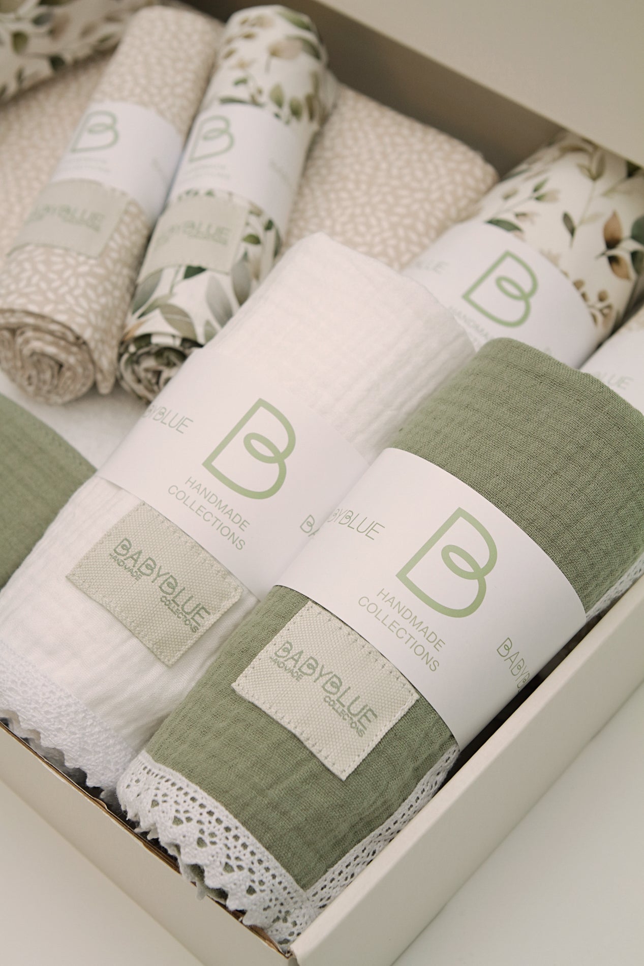 • Δύο πάνες αγκαλιάς από βαμβακερή μουσελίνα (0.65*0.65)