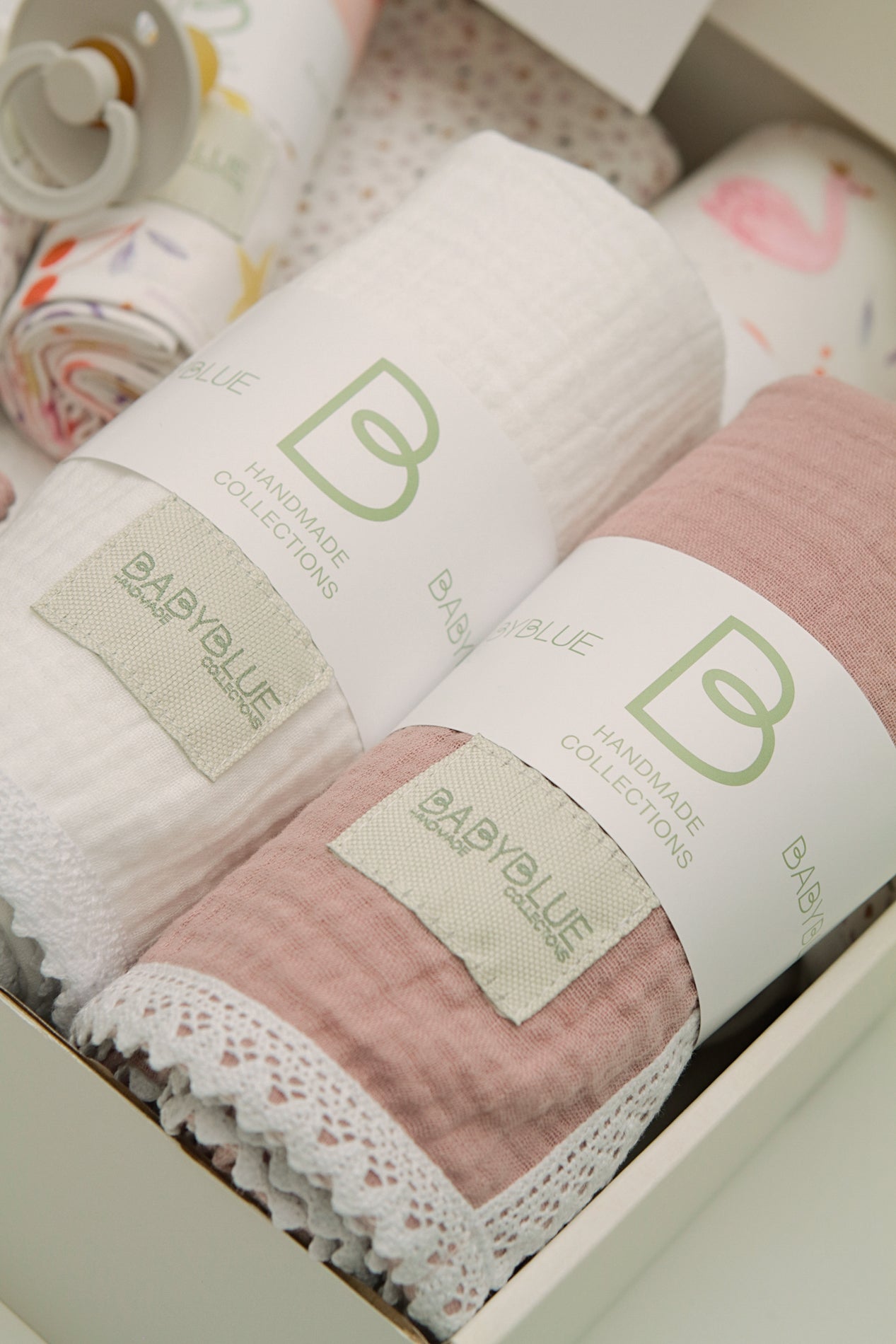 • Δύο πάνες αγκαλιάς από βαμβακερή μουσελίνα (0.65*0.65)