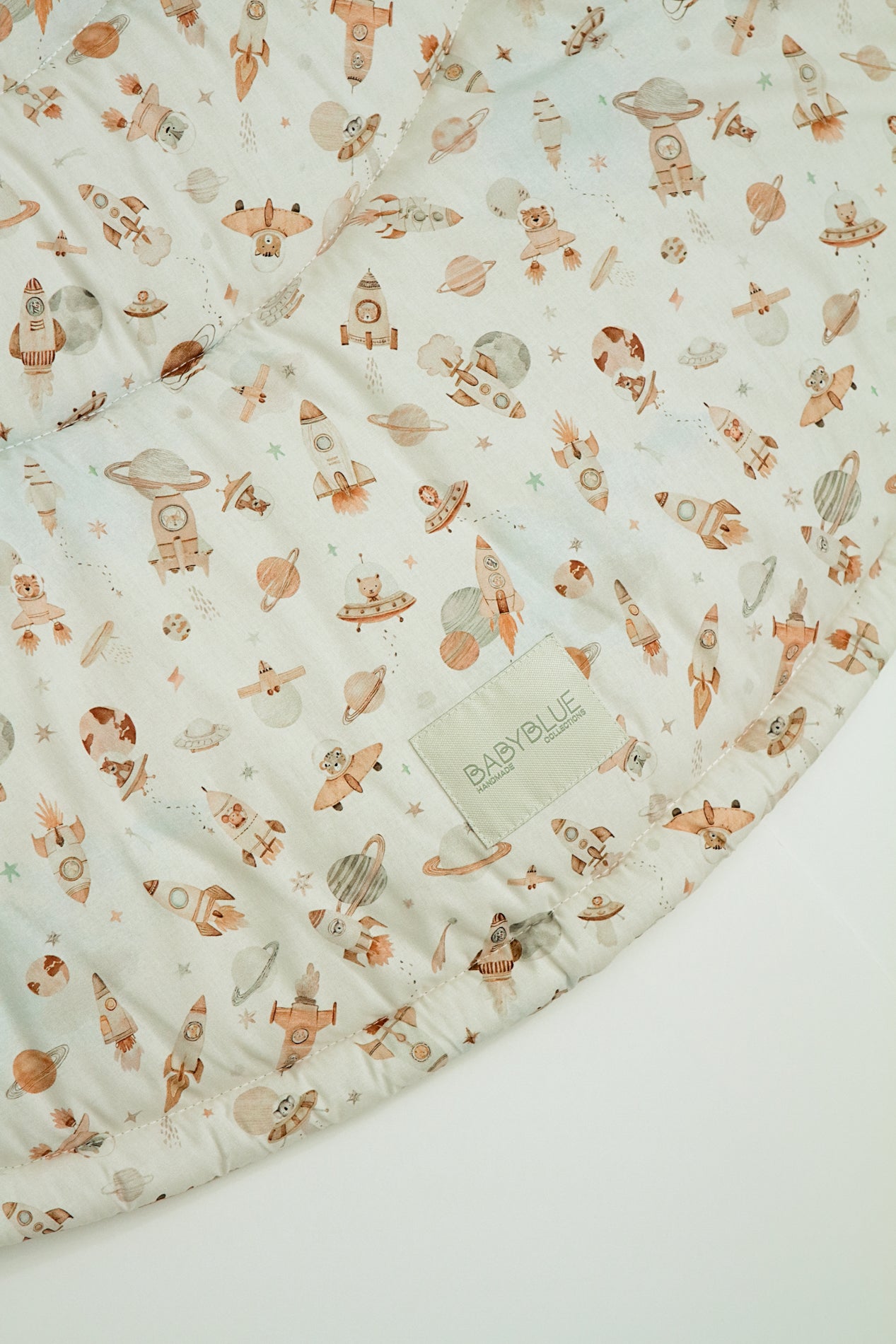 Το χαλάκι δραστηριοτήτων της BabyBlue με το μοναδικό του design είναι μία εξαιρετική προσθήκη στο βρεφικό σας δωμάτιο. Ραμμένο στο χέρι από 100% βαμβακερά υφάσματα, ενισχυμένο εσωτερικά  με υποαλλεργική βάτα ώστε να είναι απαλό και να προσφέρει ένα ασφαλές μέρος για παιχνίδι.